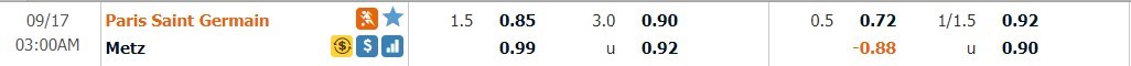 Xem tỷ lệ kèo cá cược bóng đá trực tuyến Paris Saint-Germain vs Metz