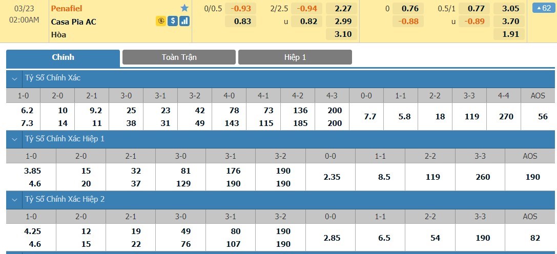 Tỷ lệ kèo cá cược bóng đá trận Penafiel vs Casa Pia