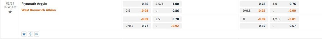 Xem tỷ lệ kèo cá cược bóng đá trực tuyến Plymouth vs West Brom