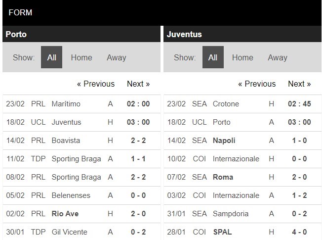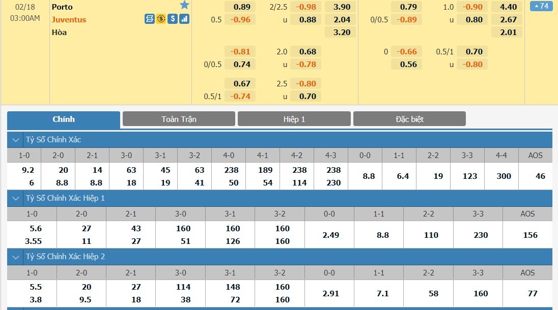 Xem tỷ lệ kèo cá cược bóng đá trực tuyến Porto vs Juventus