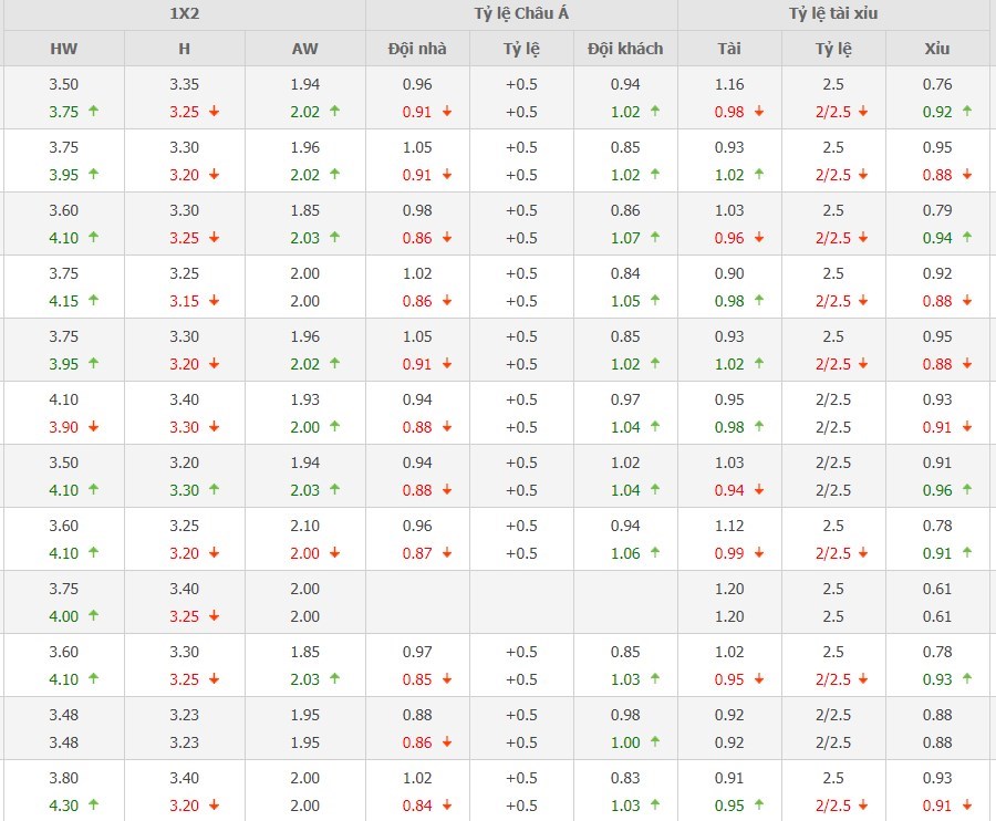 Chu kỳ lên xuống tỷ lệ kèo Porto vs Juventus