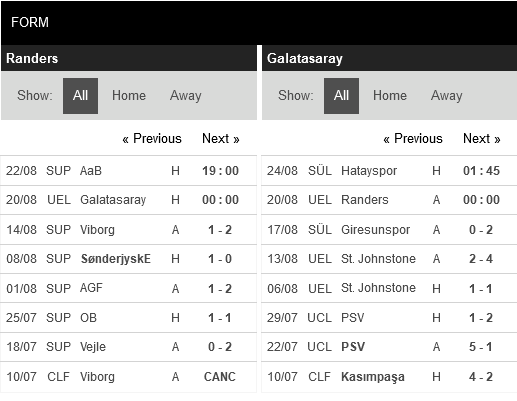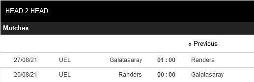 Thống kê đối đầu Randers FC vs Galatasaray