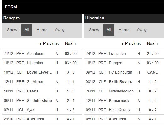 Có thể nói rằng đây là mùa giải mà Rangers không thể giữ được phong độ ổn định một cách xuyên suốt nhất. Mình chứng cho thấy rõ nhất chính là 5 vòng đấu ra sân gần nhất, Rangers chỉ có vỏn vẹn 2 chiến thắng, còn lại họ hòa 2 và thua 1 trận. Ngay ở trận đấu ra sân gần nhất, Rangers đến làm khách của St.Mirren – đối thủ yếu hơn rất nhiều. Tưởng chừng họ sẽ có ba điểm, tuy nhiên chung cuộc đoàn quân HLV Giovanni van Bronckhorst chỉ có tỷ số 1-1 ra về. Đây là lúc mà Rangers cần phải trở lại với hình ảnh vốn có, thế nên ba điểm trước Hibernian là điều bắt buộc của đội chủ nhà.