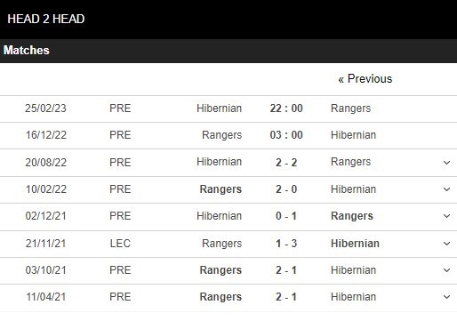 Hibernian không phải là đối thủ của Rangers. Xét 10 trận đấu ra sân gần nhất, Rangers có đến 7 chiến thắng trước Hibernian, và họ chỉ bị đánh bại đúng 1 trận đấu. 7 trận trên sân nhà gần nhất, Rangers cũng có đến 6 chiến thắng mỗi khi đụng độ Hibernian. Hai trận đấu Rangers đụng độ Hibernian gần nhất đều chứng kiến Rangers có bàn mở tỷ số. Nhiều khả năng Rangers sẽ lặp lại kịch bản tương tự trên sân nhà của mình.