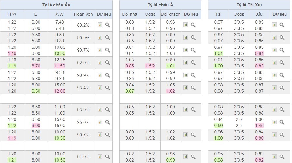 Các cuộc đấu gần nhất của Rapid Vienna hầu như đều là các bữa tiệc bàn thắng. Rapid Vienna có cho mình 13 bàn thắng và nhận 8 bàn thua. Dundalk cũng đã nhận tới 8 lần lọt lưới trong 5 trận trước đó. 90 phút tới dự kiến sẽ là 1 tỷ lệ kèo tài.
