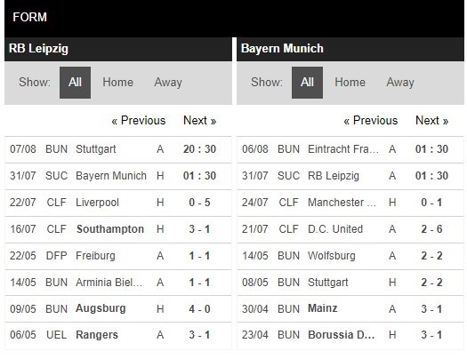 Trong khuôn khổ Siêu cúp Đức, Bayern Munich sẽ có màn đối đầu với RB Leipzig trên sân vận động Red Bull Arena và đương nhiên Hùm Xám vẫn là đội bóng được đánh giá cao hơn trong việc mang về cho mình chức vô địch. Dẫu vậy trong những trận đấu cụ thể như thế này thì cả hai đội sẽ cần phải thi đấu cẩn trọng.