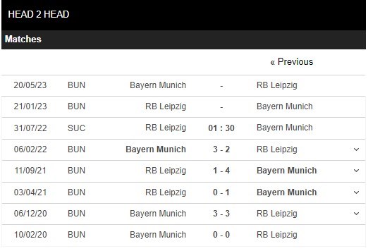 Thống kê phong độ RB Leipzig vs Bayern Munich