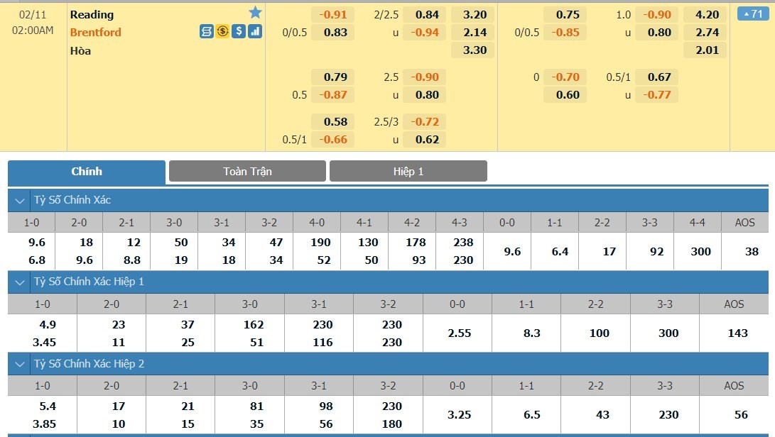 Theo chuyên gia phân tích thị trường cá cược Lucky88, tỷ lệ kèo chấp của trận đấu là -1/4 bàn dành cho các cầu thủ đội khách. Reading 5 lần đón tiếp Brentford tại sân nhà gần đây nhất đã thắng 2 và thua 3 trận. Tại sân khách, Brentford chỉ nhận có 2 trận thua từ đầu mùa tới giờ. Với chuỗi bất bại vừa qua, tỷ lệ Brentford chấp bàn sẽ là rất tiềm năng. 5 trận đấu gần đây nhất diễn ra giữa 2 đội có tổng cộng 15 bàn thắng được ghi. 4 trong 5 cuộc đấu kể trên đã kết thúc với tối thiểu 3 bàn mỗi trận. 3 vòng vừa qua, Brentford tạo ra tới 14 bàn thắng. Các trận có sự góp mặt của họ mùa này có trung bình 2,9 bàn còn Reading là 2,6 bàn. Vì thế, 90 phút tới dễ sẽ là 1 kết quả tài nữa.