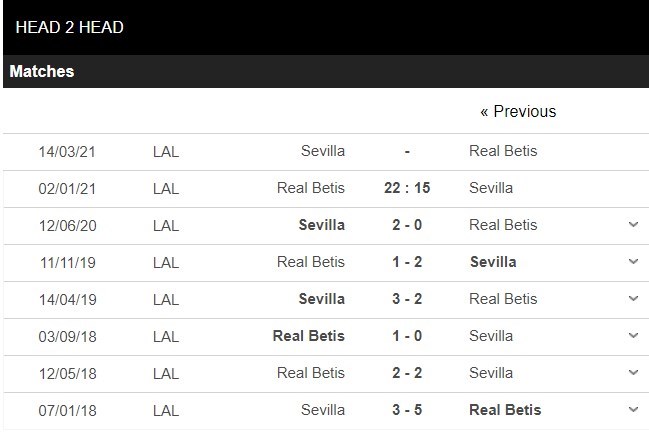 Thống kê đối đầu Real Betis vs Sevilla