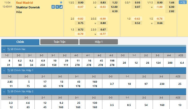 Xem tỉ lệ kèo cá cược bóng đá trực tuyến Real Madrid vs Shakhtar Donetsk