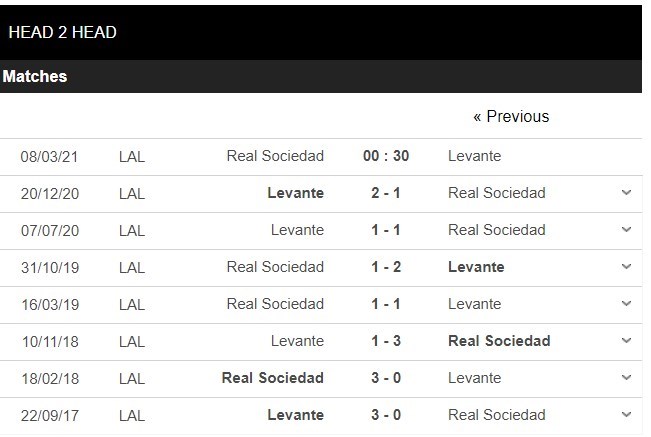Thống kê đối đầu Real Sociedad vs Levante