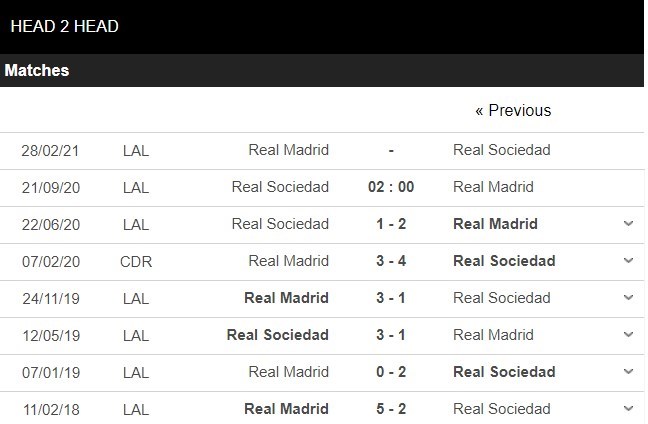 Thống kê đối đầu Real Sociedad vs Real Madrid