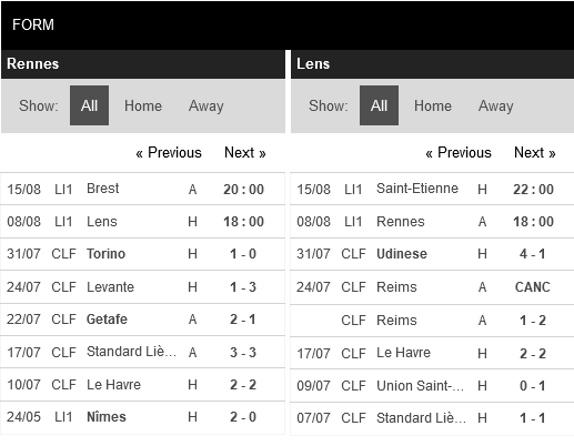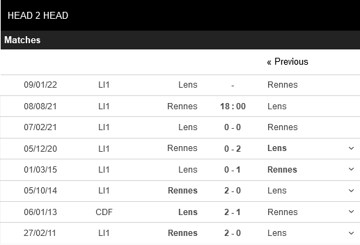 Thống kê phong độ Rennes vs Lens