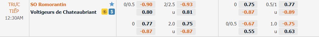 Tỷ lệ kèo cá cược bóng đá trận Romorantin vs Voltigeurs de Chateaubriant