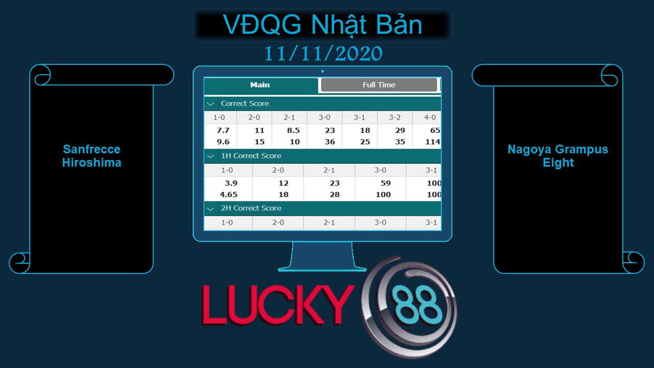 Tỷ lệ kèo cá cược bóng đá trực tuyến trận Sanfrecce Hiroshima vs Nagoya Grampus Eight