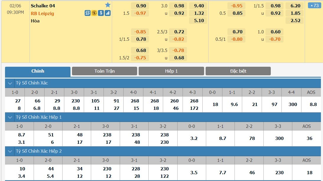 Tỷ lệ kèo cá cược bóng đá trận Schalke 04 vs RB Leipzig