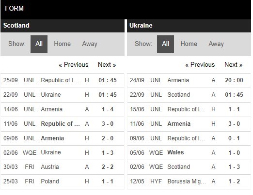 Trong 5 trận đấu gần nhất trên mọi đấu trường, Scotland đã sở hữu cho mình 9 pha lập công cùng với 9 lần phải vào lưới nhặt bóng. Bên kia chiến tuyến, Ukraine đã mang về 8 bàn thắng, còn lại là việc hàng thủ đã phải nhận 2 bàn thua. Ở 3 lần gần nhất đôi bên đụng độ nhau, đã có 2 trận đấu kết thúc với tổng số bàn thắng từ 3 trở lên. Các nhà đầu tư nên tin tưởng vào khả năng nổ Tài ở cuộc đối đầu này với tỷ lệ tài xỉu là 2 trái.