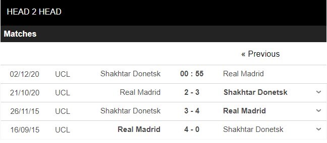 Thống kê đối đầu Shakhtar Donetsk vs Real Madrid