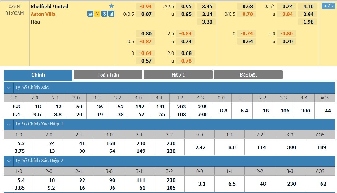 Xem tỷ lệ kèo cá cược bóng đá trực tuyến Sheffield United vs Aston Villa