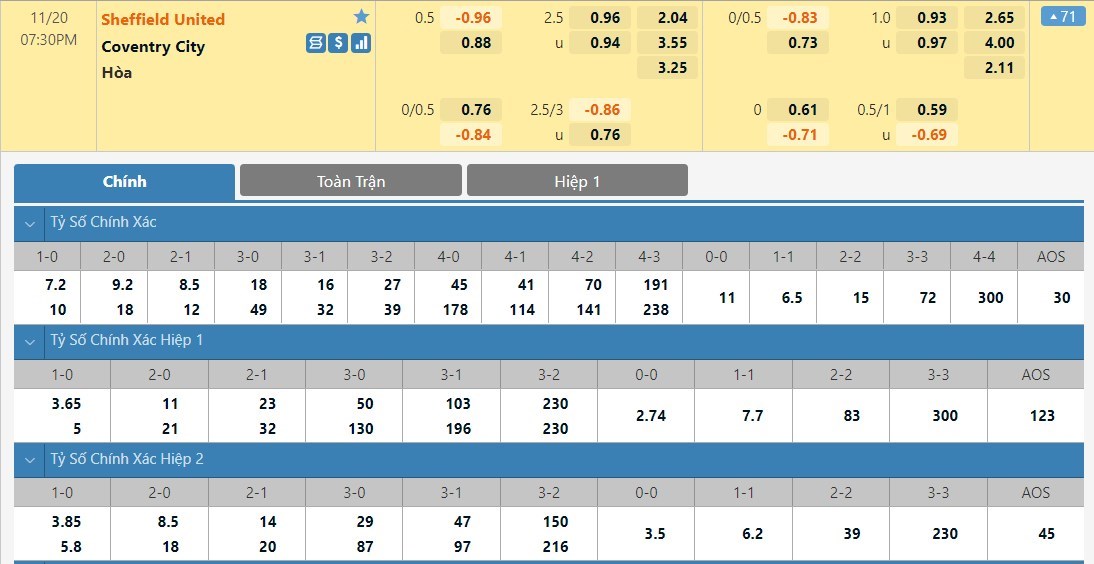 Tỷ lệ kèo cá cược bóng đá trực tuyến trậnSheffield United vs Coventry City