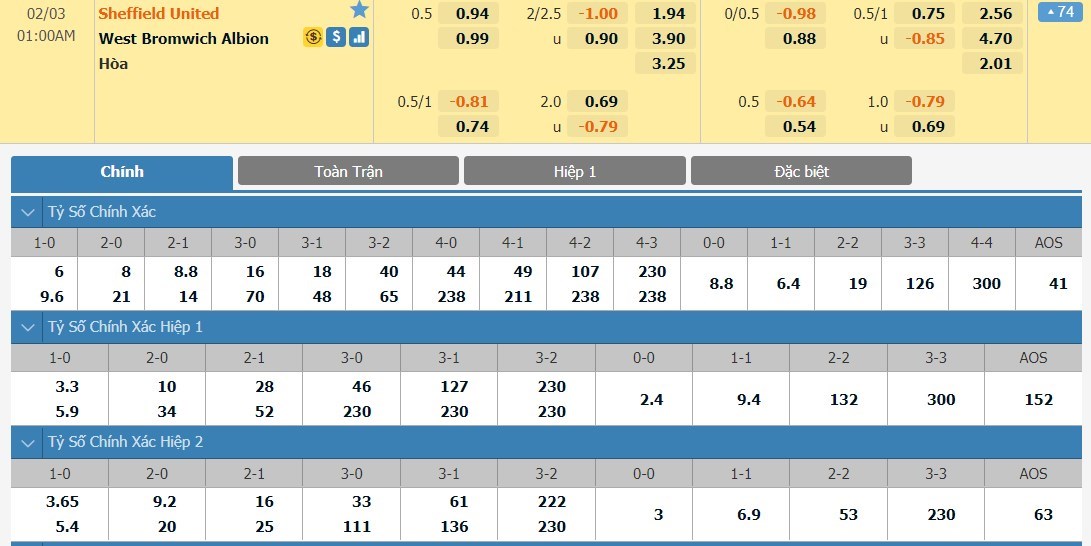 Xem tỷ lệ kèo cá cược bóng đá trực tuyến Sheffield United vs West Bromwich