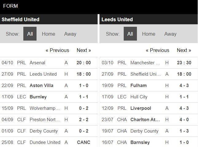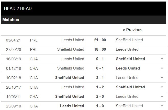 5 cuộc đụng độ gần đây nhất giữa 2 đội đều diễn ra ở Championship từ 2 năm trước đó trở đi và Sheffield United thắng 4, chỉ thua 1 trước Leeds. Tuy nhiên, ở thời điểm hiện tại, Sheffield United chắc chắn đang gặp vô vàn khó khăn và những dấu hỏi với màn trình diễn vừa qua. Trong khi đó, Leeds dù cũng chỉ thắng 1 trong 2 vòng đầu tiên nhưng màn trình diễn của thầy trò Bielsa là ấn tượng hơn nhiều khi khiến Liverpool phải chật vật.