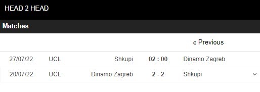 Thống kê đối đầu Shkupi vs Dinamo Zagreb