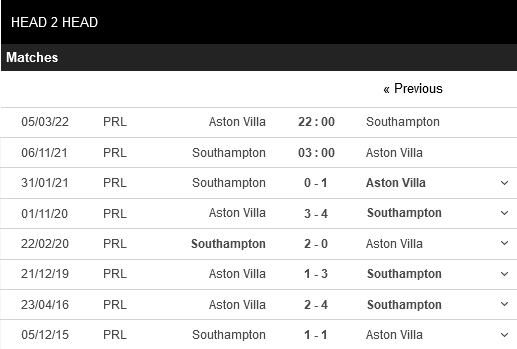 Về thành tích đối đầu, Aston Villa cũng đang lép vế so với Southampton khi chỉ thắng 1 trong 10 trận gần nhất, nhận tới 6 trận thua.