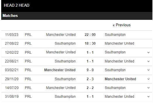 Thống kê đối đầu Southampton vs Manchester United