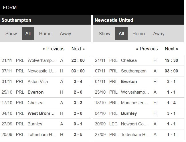 Xem tỷ lệ kèo cá cược bóng đá trực tuyến Southampton vs Newcastle United