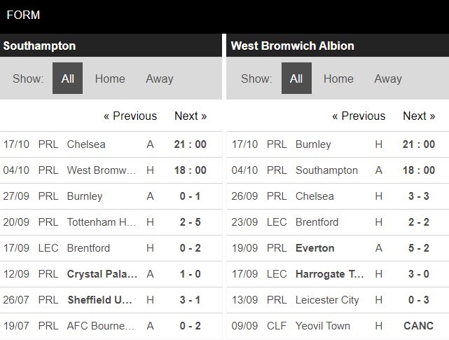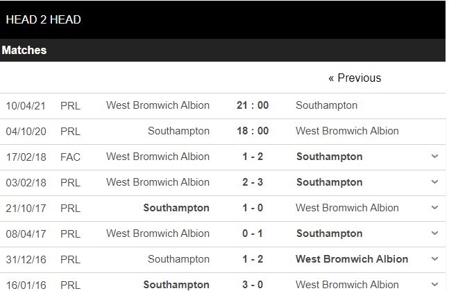 5 trận đấu gần đây nhất giữa 2 đội, Southampton cho thấy sự vượt trội khi thắng và chỉ thua có 1 trận trước West Brom. Dù vậy thì chuyên gia lại nhận định cuộc đối đầu sắp tới sẽ không diễn ra dễ dàng dành cho The Saints. Đánh giá về khả năng nhập cuộc trong hiệp đấu đầu tiên, West Brom thể hiện không tồi khi họ chỉ thua 1 trận nếu xét riêng trong khoảng thời gian 45 phút đầu tiên sau 3 vòng đấu. Thậm chí ở lượt trận gần nhất gặp Chelsea, họ còn là đội vượt lên dẫn bàn.