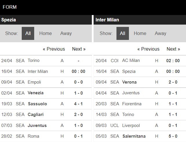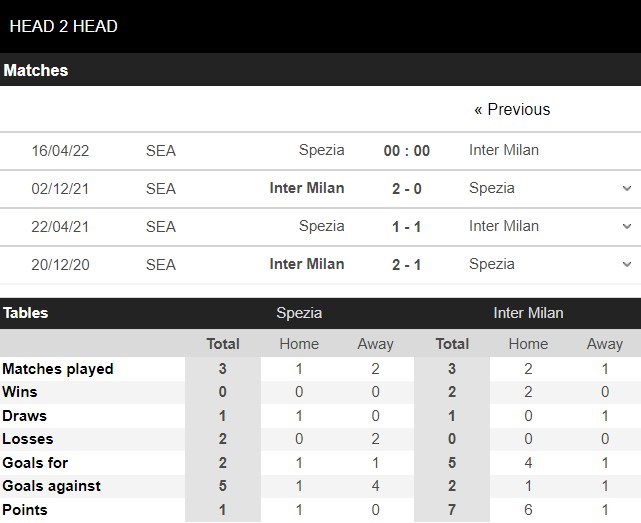 Đến với vòng 33 Serie A, Inter Milan sẽ có chuyến làm khách tới sân của các cầu thủ Spezia. Trong quá khứ chủ nhà vẫn luôn được xem là đối thủ ưa thích bậc nhất của nhà ĐKVĐ. Vì vậy các chuyên gia đều tin đây sẽ là 1 chuyến dạo chơi với đoàn quân của Simone Inzaghi mà thôi.