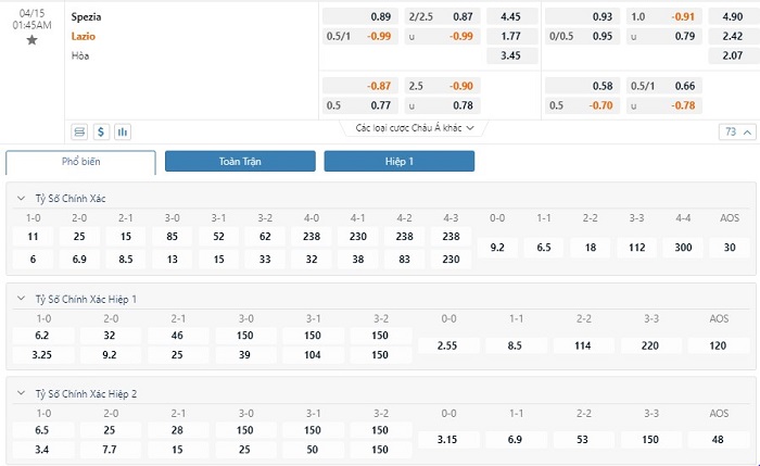 Chu kỳ lên xuống tỷ lệ kèo Spezia vs Lazio