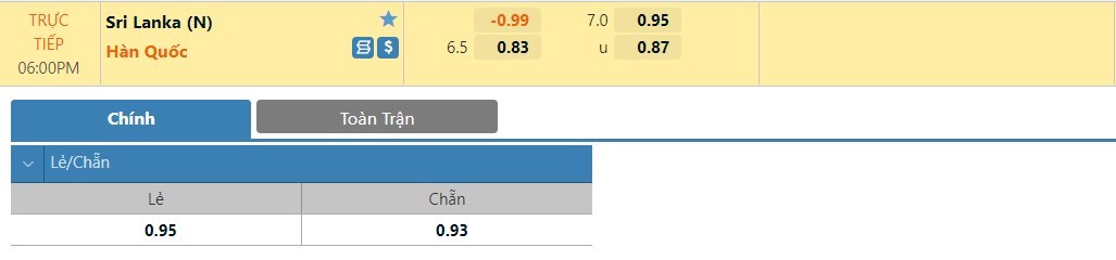 Tỷ lệ kèo cá cược bóng đá trực tuyến trận Sri Lanka vs Hàn Quốc