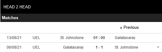 Thống kê đối đầu St. Johnstone vs Galatasaray