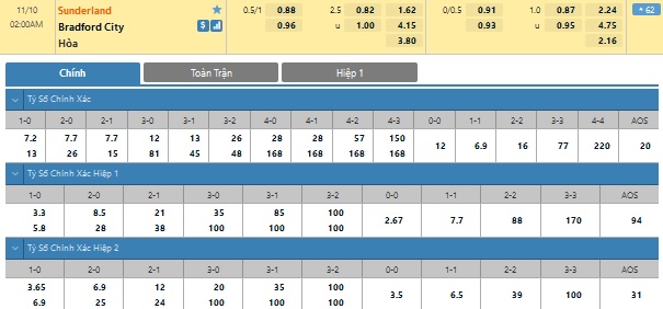 Tuy vậy, xét phong độ gần đây thì Sunderland lép vế hơn hẳn. Họ chỉ thắng kèo hiệp 1 ở 1/6 trận gần nhất trong khi Bradford chỉ thua kèo 1 trong 6 trận gần đây. Điều đó cho thấy hoàn toàn có thể đặt niềm tin vào Bradford trong hiệp 1 trận đấu tới.