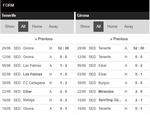 Cuối tuần này Girona sẽ có chuyến hành quân tới sân của Tenerife trong khuôn khổ lượt về vòng play off thăng hạng. Ở trận lượt đi dù cả 2 đã chơi nỗ lực nhưng họ vẫn không thể tìm được đường vào mảnh lưới của nhau. Vì vậy có thể nói cơ hội vẫn đang chia đều cho cả chủ nhà lẫn đội khách ở trận lượt về này.