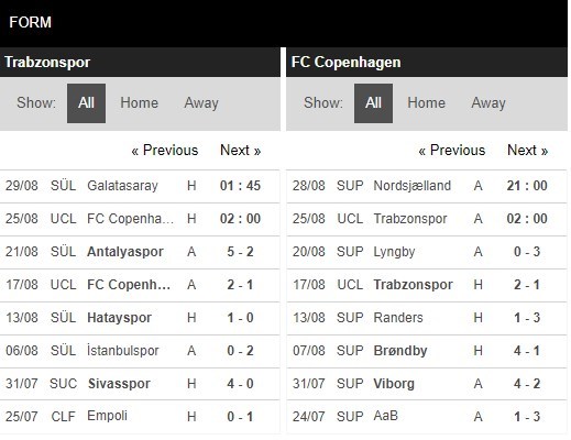 Thống kê phong độ Trabzonspor vs Copenhagen