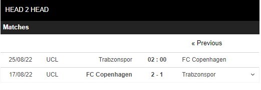 Thống kê đối đầu Trabzonspor vs Copenhagen