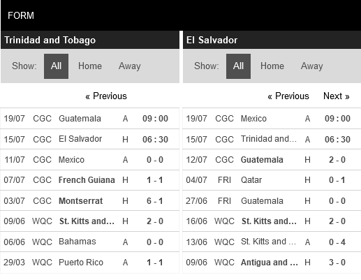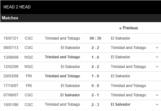 Trinidad & Tobago đang có sự vượt trội về đối đầu. Họ không thua trong 5 lần đụng độ gần nhất với El Salvador. Nhưng ở trận đấu tới thì kết quả tốt nhất mà họ có thể hướng đến có lẽ là 1 trận hòa.