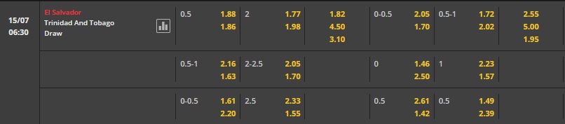 Xem tỉ lệ kèo cá cược bóng đá trực tuyến Trinidad & Tobago vs El Salvador