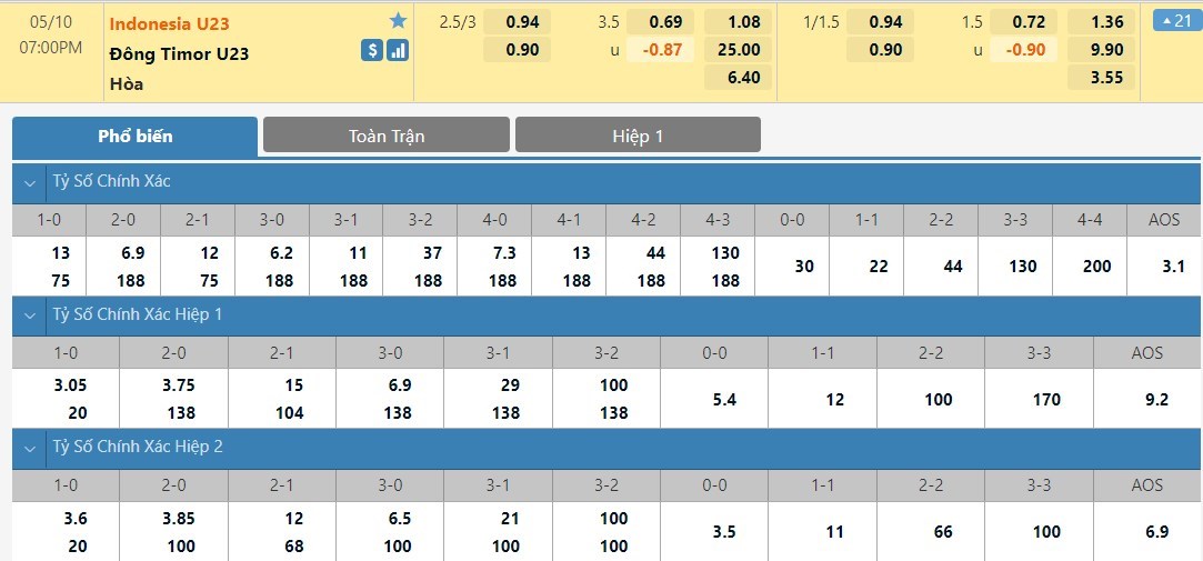 Tỷ lệ kèo cá cược bóng đá trận U23 Indonesia vs U23 Đông Timor