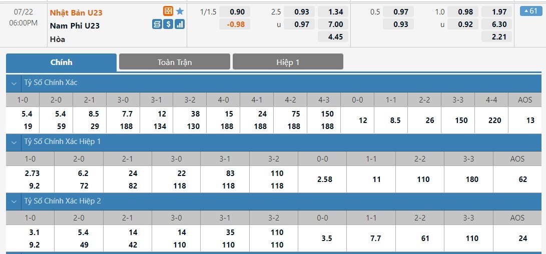 Tỷ lệ kèo cá cược bóng đá trận U23 Nhật Bản vs U23 Nam Phi