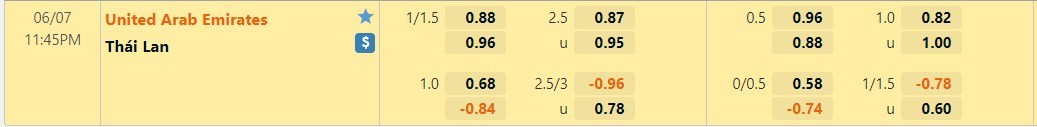 Tỷ lệ kèo cá cược bóng đá trực tuyến trận UAE vs Thái Lan