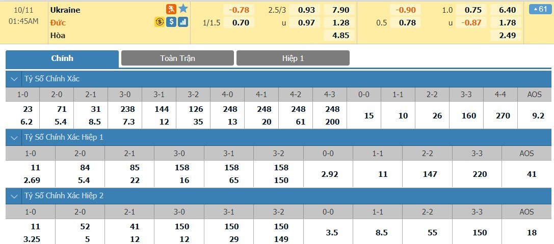 Xem tỷ lệ kèo cá cược bóng đá trực tuyến Ukraine vs Đức