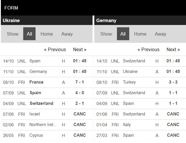 Ukraine sẽ trở lại sân nhà để đón tiếp ĐT Đức ở lượt trận này. Lẽ dĩ nhiên, Ukraine bị đặt ở thế cửa dưới. So sánh về chất lượng đội hình, đội tuyển Đức vẫn ở một đẳng cấp vượt trội. Song đây là quãng thời gian mà "Cỗ xe tăng" đang lỗi nhịp. Các nhân tố xuất sắc của họ chưa tìm được tiếng nói chung. Vì vậy mà nếu thi đấu tập trung, đội chủ nhà có cơ sở để nghĩ đến việc kiếm một kết quả hòa, ít nhất là trong hiệp 1.