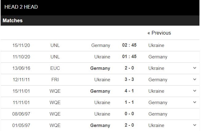 Thống kê đối đầu Ukraine vs Đức