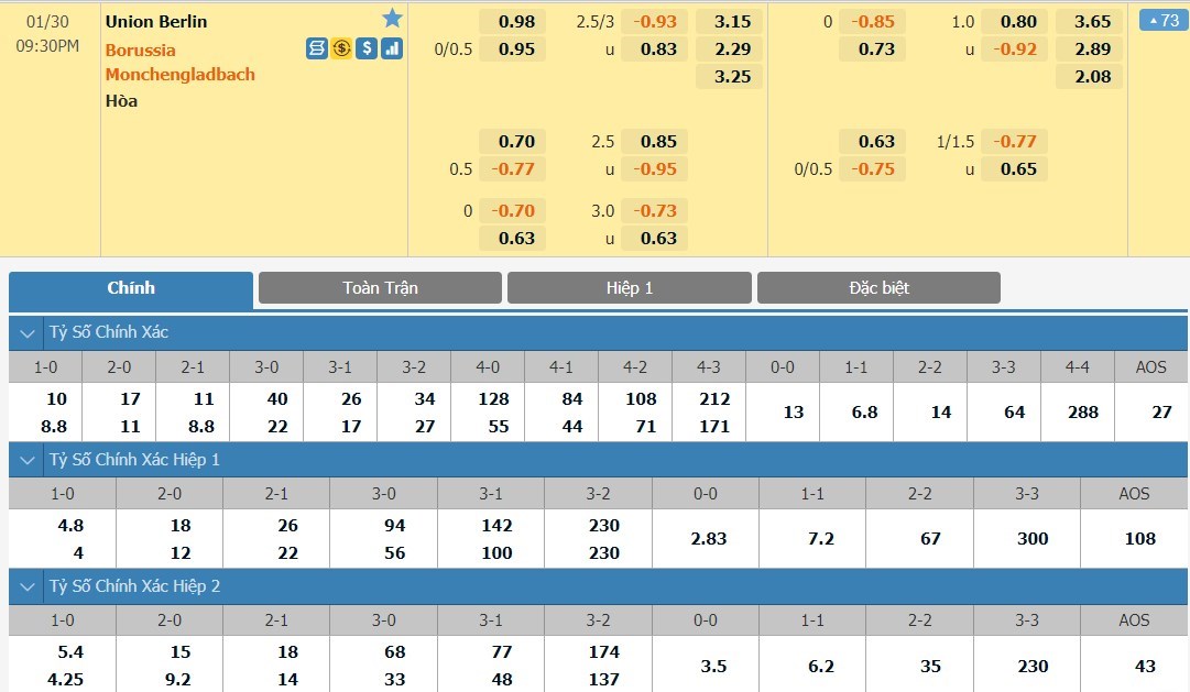 Tỷ lệ kèo cá cược bóng đá trận Union Berlin vs Monchengladbach