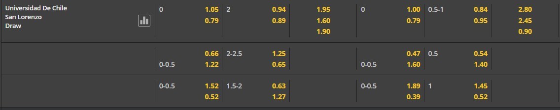 Tỷ lệ kèo cá cược bóng đá trận Universidad de Chile vs San Lorenzo