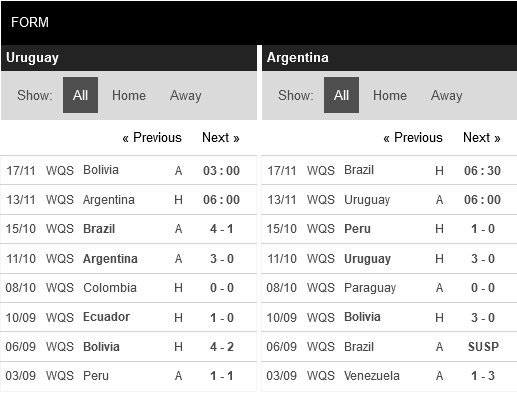 Uruguay đang cho thấy sự kém cỏi trông thấy so với những ông lớn trong khu vực. Họ bước vào trận gặp Argentina với 3 trận không thắng liên tiếp. Trong số đó có 2 trận thua Argentina và Brazil cùng 1 trận hòa trước đối thủ cạnh tranh trực tiếp là Colombia. Điều đó cho thấy bóng đá Uruguay đã sa sút và nhiều khả năng không làm khó được Argentina ở trận đấu tới.